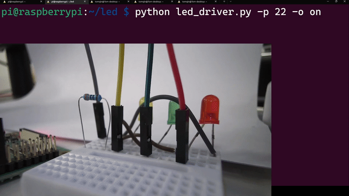 If we want to make the red bulb light up, we run python led_driver.py -p 22 -o on