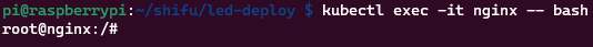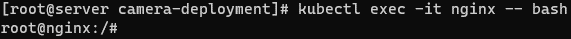Then execute kubectl exec -it nginx -- bash to get to the nginx command line