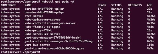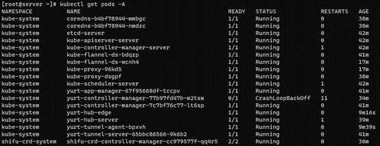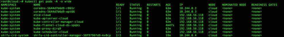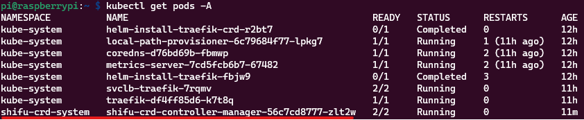 Execute kubectl get pods -A again to see the Shifu Framework controller deployed to the cluster: