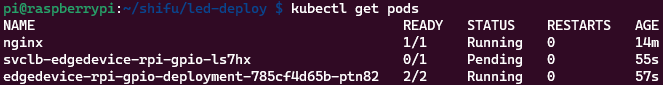 Please note that in the Deployment file we need to add privileged: true to the container's securityContext, so that we can use the Raspberry Pi's GPIO in the container, then mount the Raspberry Pi's /dev/gpiomem to the container as volume.