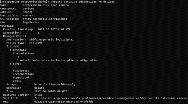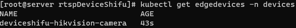 View all device twins in the cluster with kubectl get edgedevices -n devices.