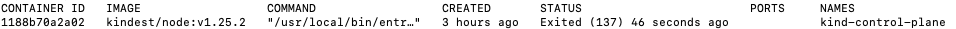 如果您看到的 Status 为 Exited 时,表示您当前的 kind 容器未在运行中,您可以通过以下命令启动。